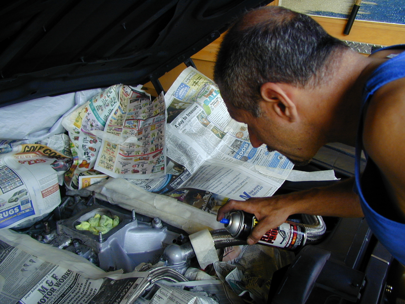 Joe spraying up the detailed manifold with Anthony's